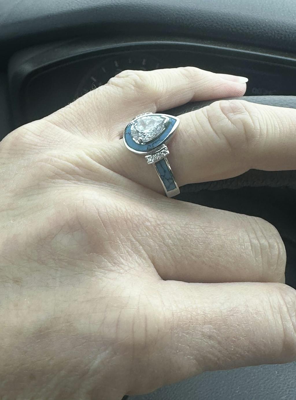 Love the ring. Beautiful large zirconia stone. Love the engraved band. ❤️