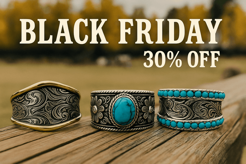 Explore stunning Western rings! Find the perfect style, From durable everyday bands in silver and turquoise to elegant office pieces with onyx or statement rings for social events, even wedding and ranch options. Custom designs available.