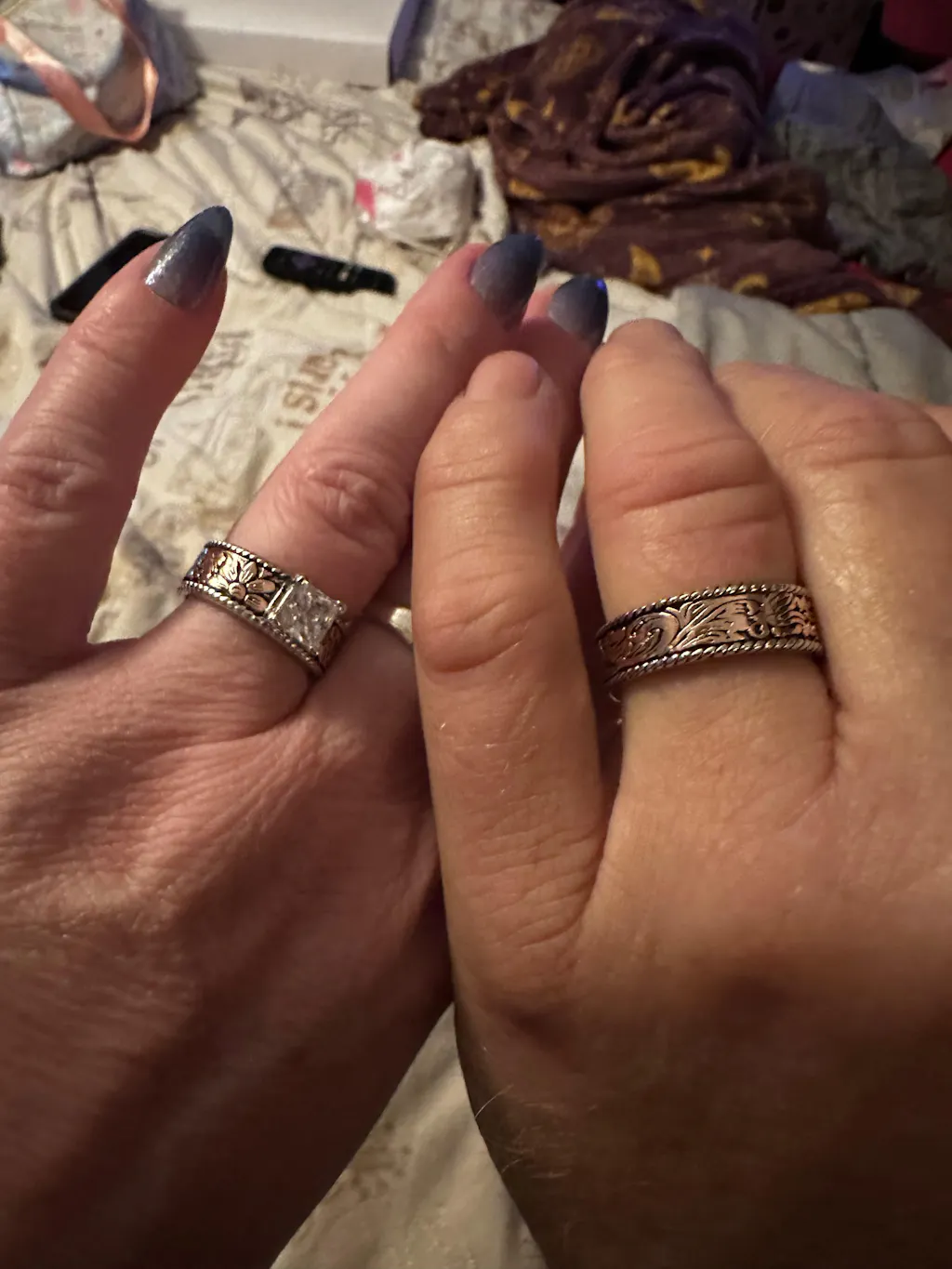 I bought this ring along with the men’s matching ring they came in today and they are absolutely stunning!! I ordered a back up set just in case!!! Thank you for making me and my husband happy we have been searching for matching rings for 6 years and these won!!!