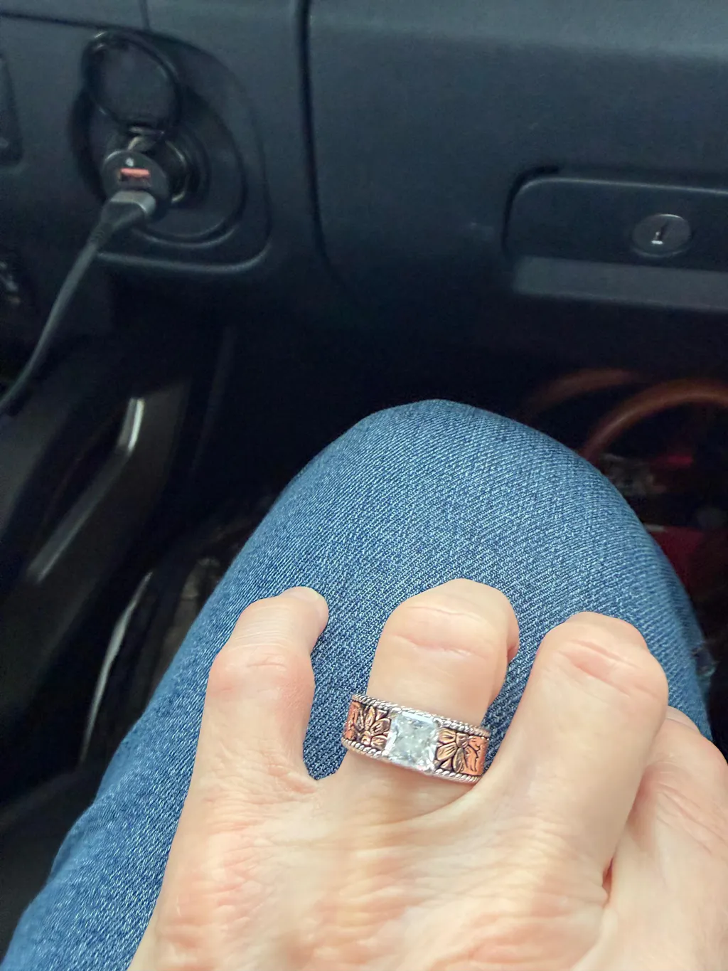 I love this ring. It goes with everything and best thing is it never flips around to the underside of my finger.