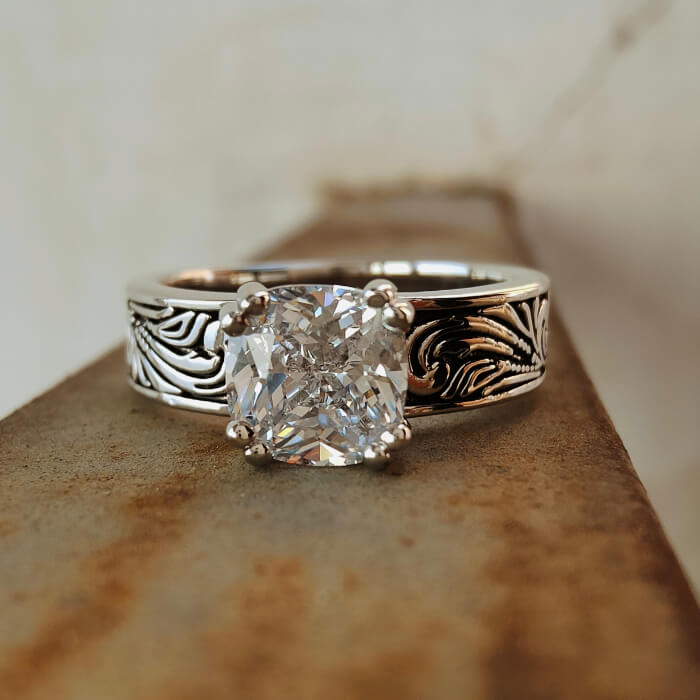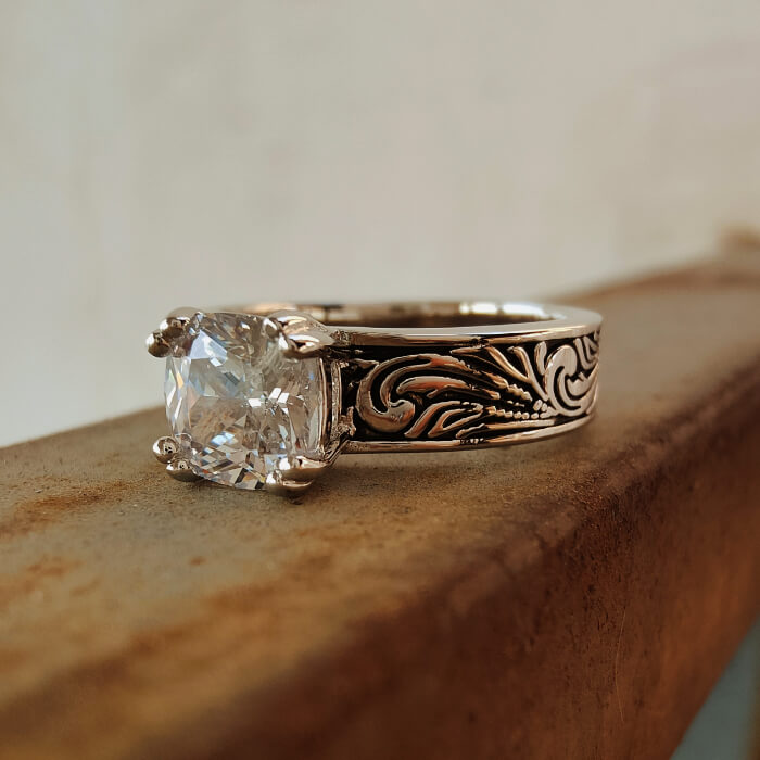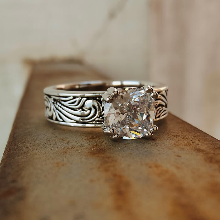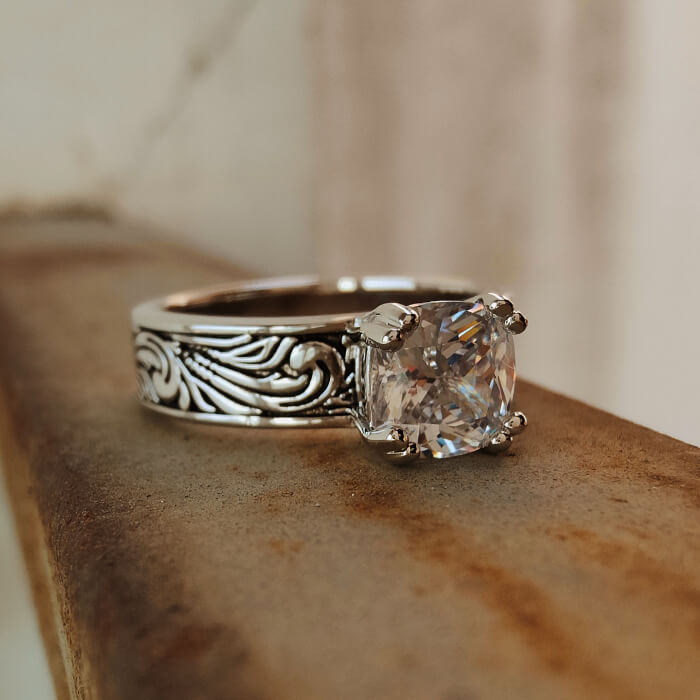 Flower Engraved Promise Western Diamond Ring