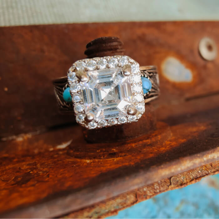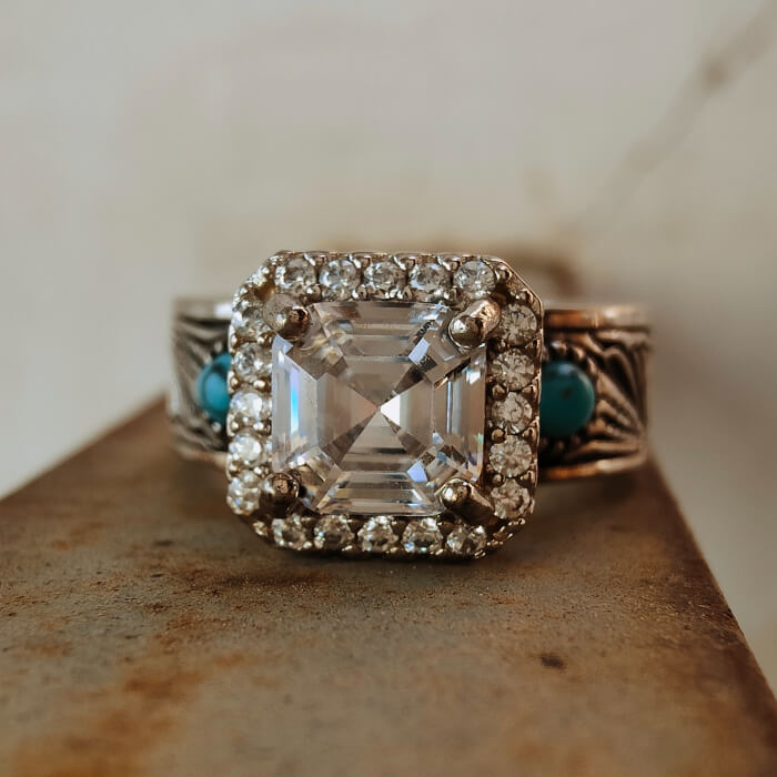 Western Radiant Cut Diamond Turquoise Engagement Ring