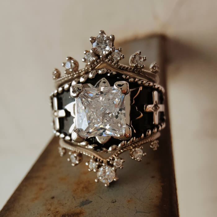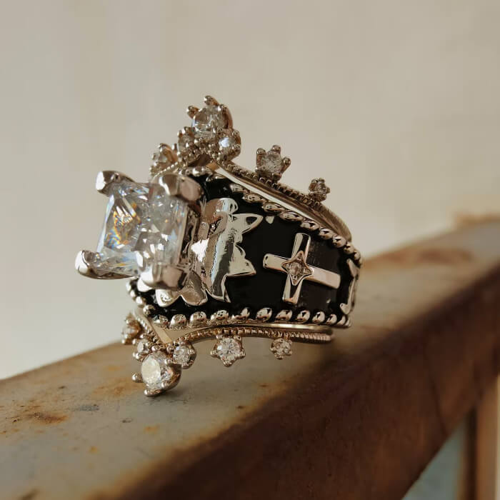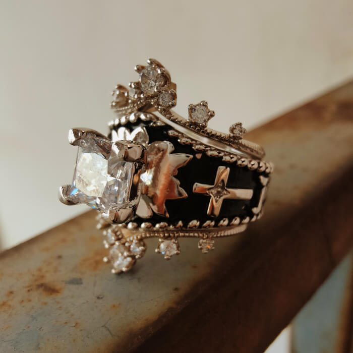 Each ring is adorned with AAAAA grade cubic zirconia, known for its exceptional clarity and sparkle, rivaling that of genuine diamonds.