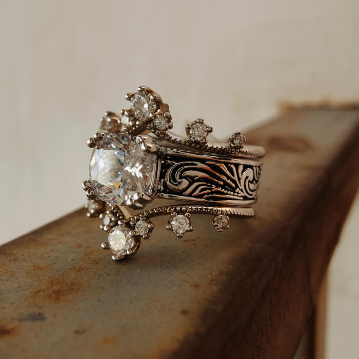 (1)Flower Engraved Promise Western Diamond Ring
