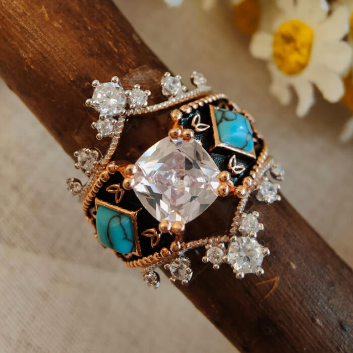 Each ring is adorned with AAAAA grade cubic zirconia, known for its exceptional clarity and sparkle, rivaling that of genuine diamonds.