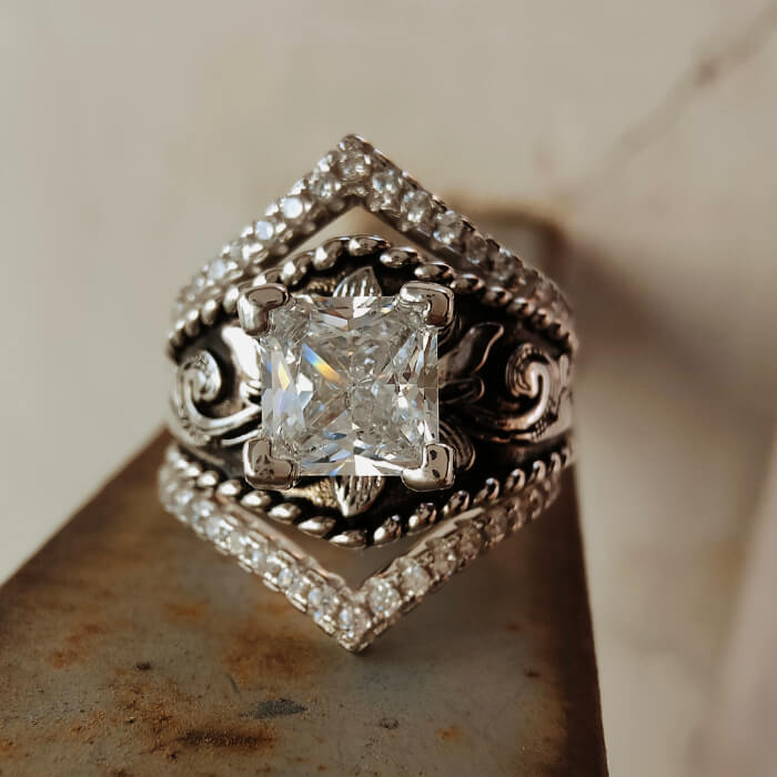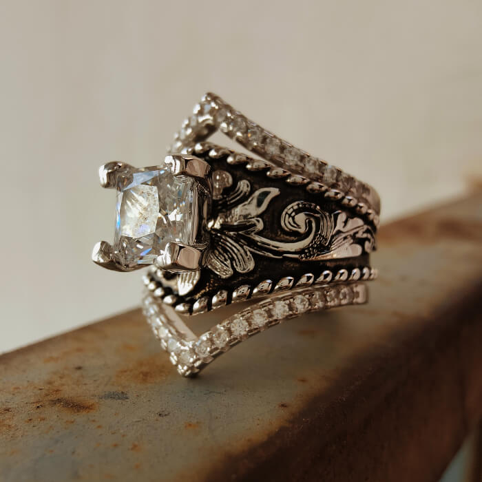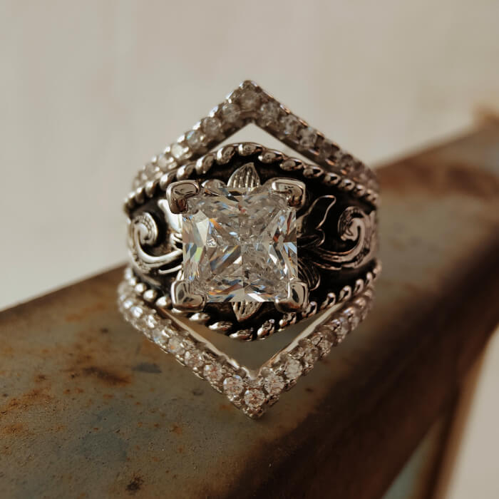 3PC Vintage Western Ring Set Square Cut Engagement Ring