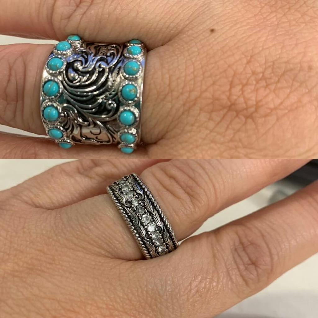 This ring set is great. Bought it as a surprise for my wife. We had a sizing issue which was remedied very quickly from Retro Turquoise!