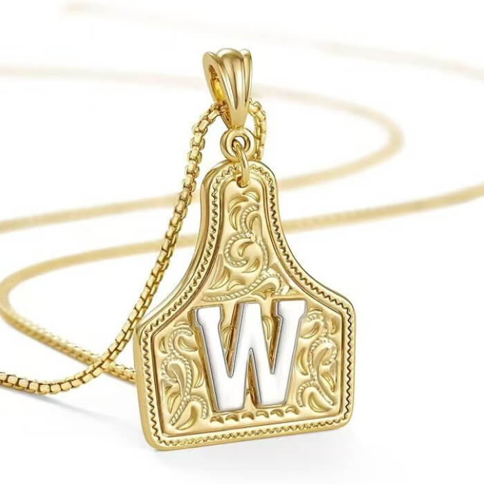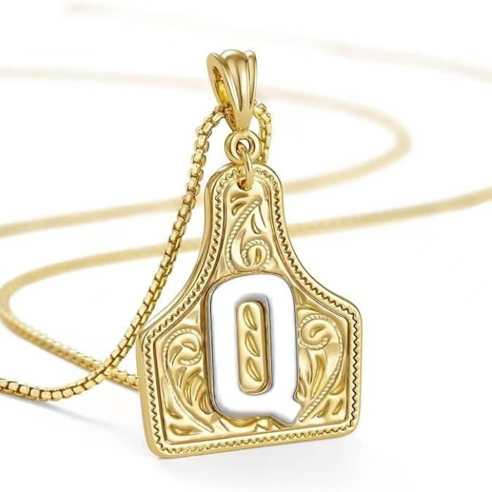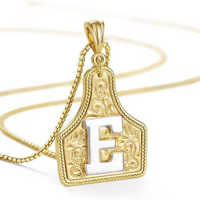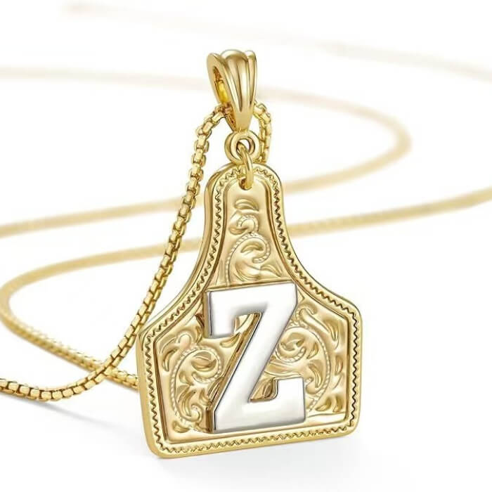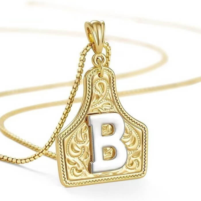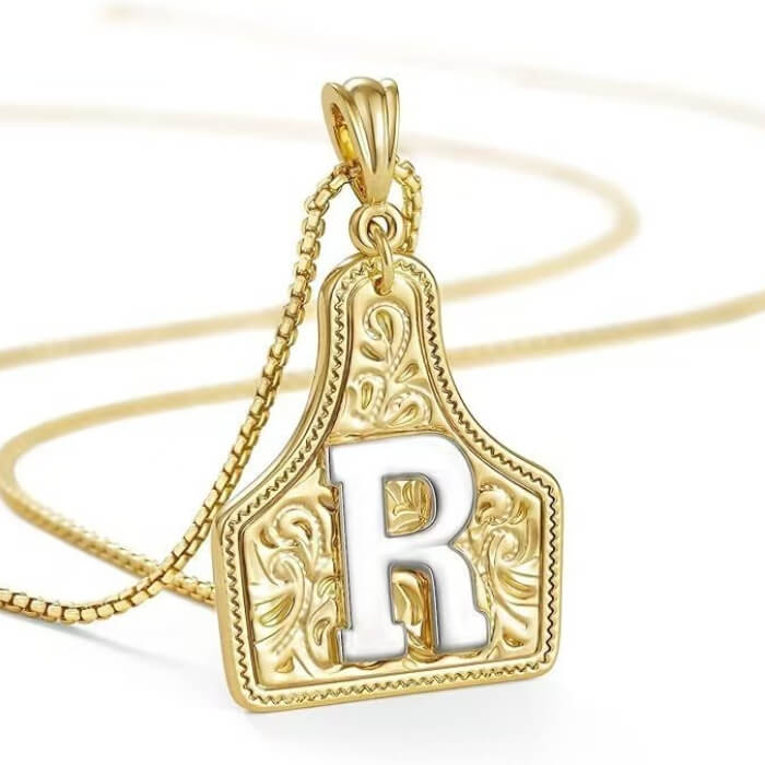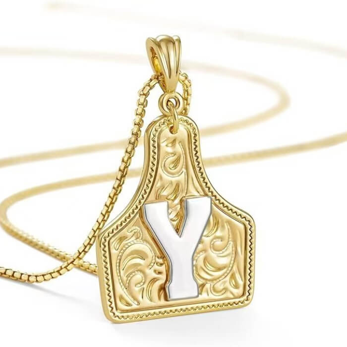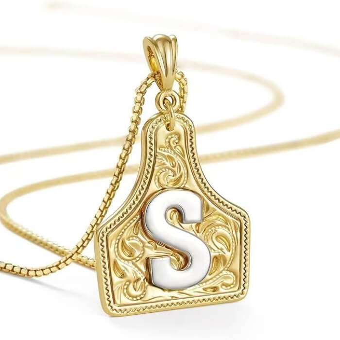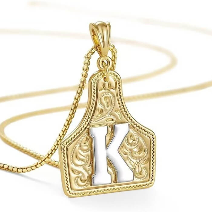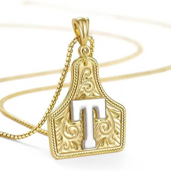 Crafted with a refined gold-tone finish and paired with a classic box chain, this necklace blends Western heritage with everyday elegance. Whether worn as a personal statement or gifted to someone special, it’s a perfect choice for those who love initial jewelry, Western-inspired accessories, and personalized designs.