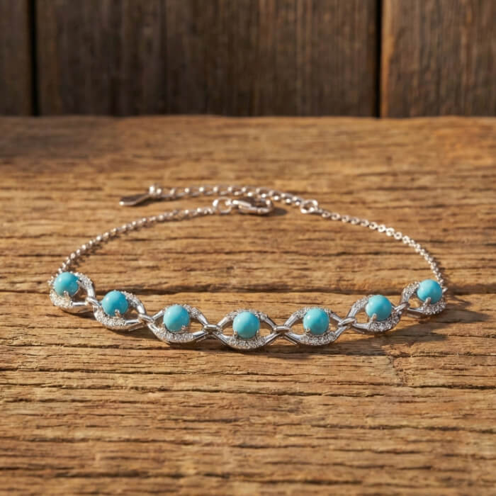 Marquise Link Turquoise Bracelet – Round Beads with Crystal Pave Setting