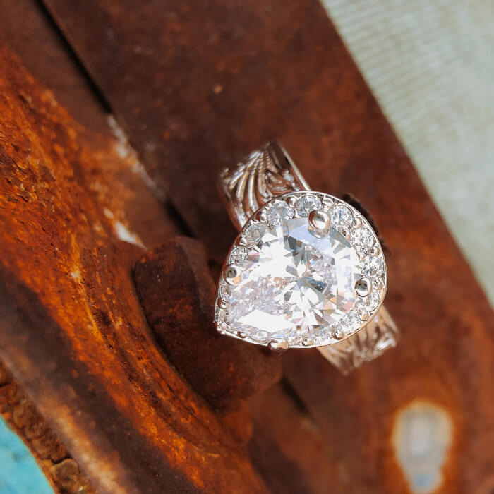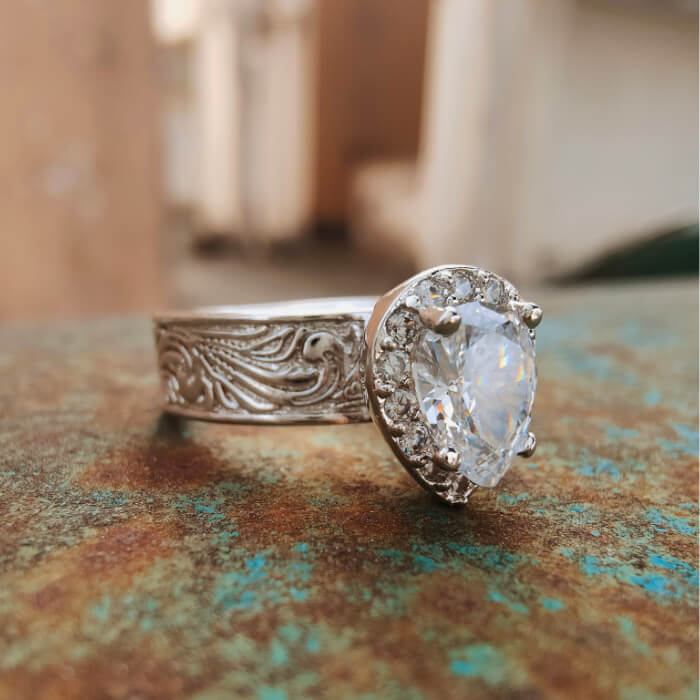Pear Diamond Wide Band Western Promise Rings for Her
