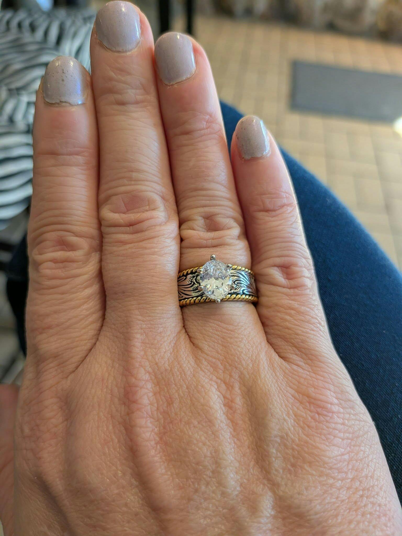 This ring is absolutely stunning! Fast shipping. I ended up needing a smaller size and they were really quick to respond and wonderful to work with.