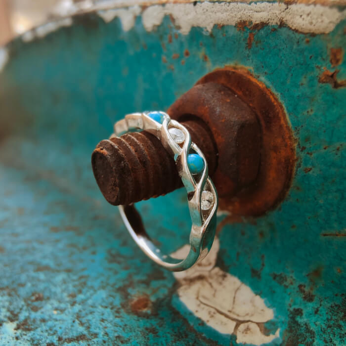 Sterling Silver Western Turquoise Diamond Engagement Rings
