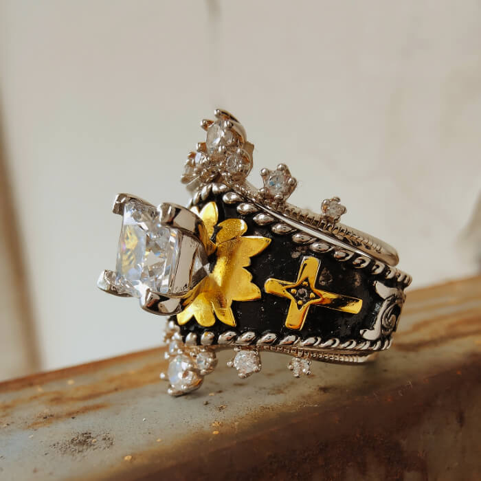 This Western Cross Ring Set combines faith, fire, and frontier artistry in one stunning trio.