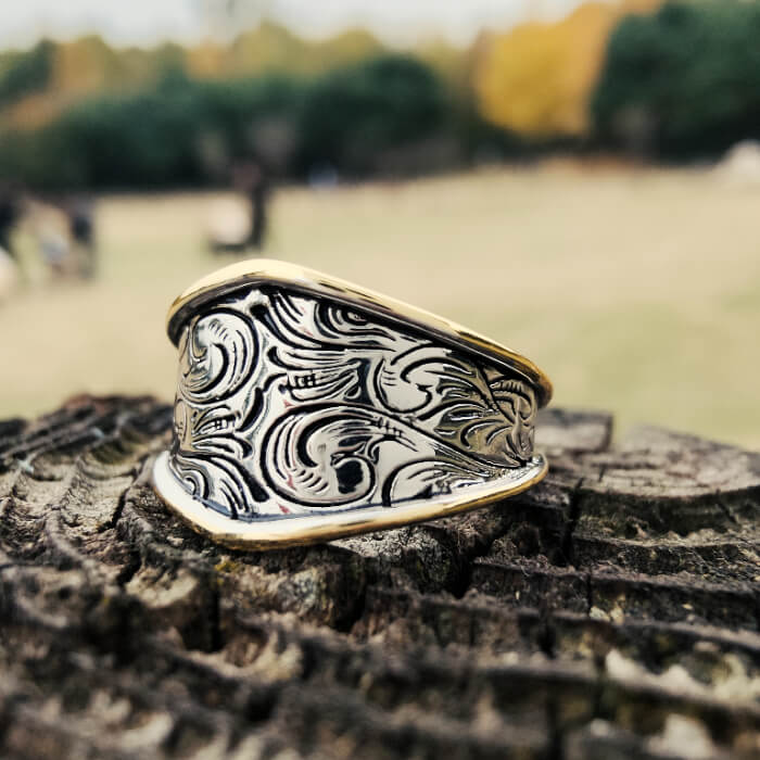 Design: Western swirl engraving with sculpted gold edges