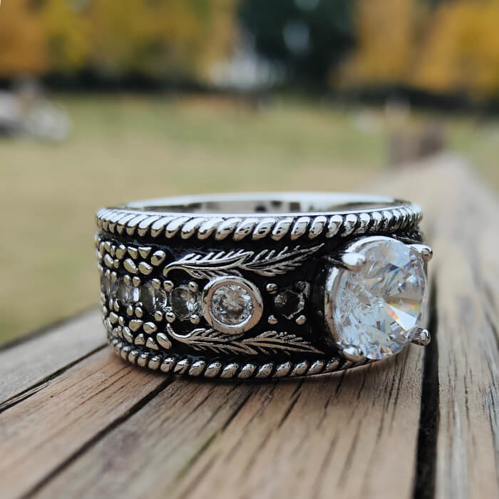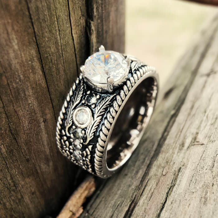 This Western Silver Engraved Ring blends bold frontier style with timeless elegance.