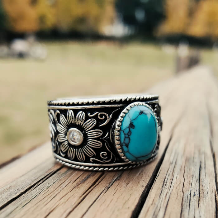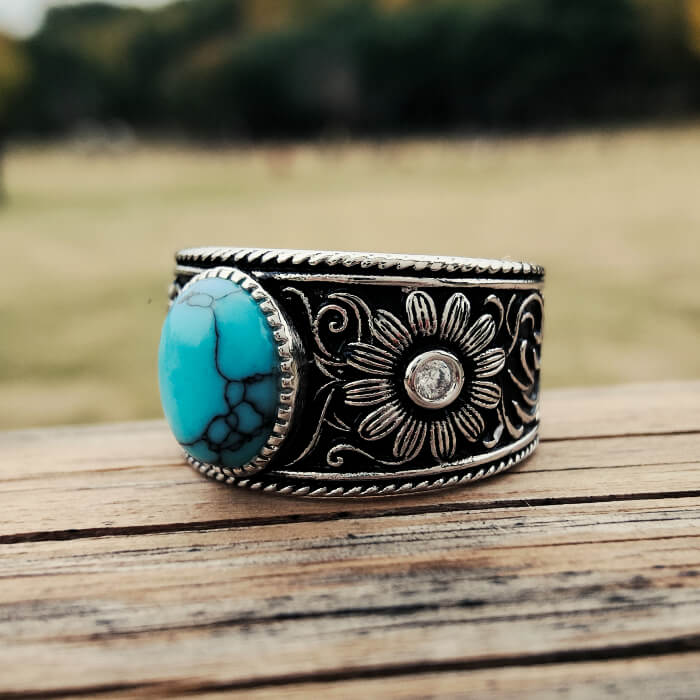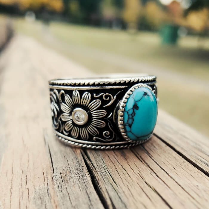 This Western Turquoise Floral Ring blends the spirit of the open desert with vintage artisan beauty.