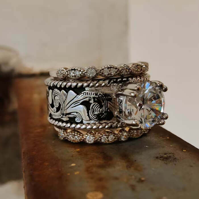 The Western Vintage Ring Set embodies timeless craftsmanship and goddess-like radiance.