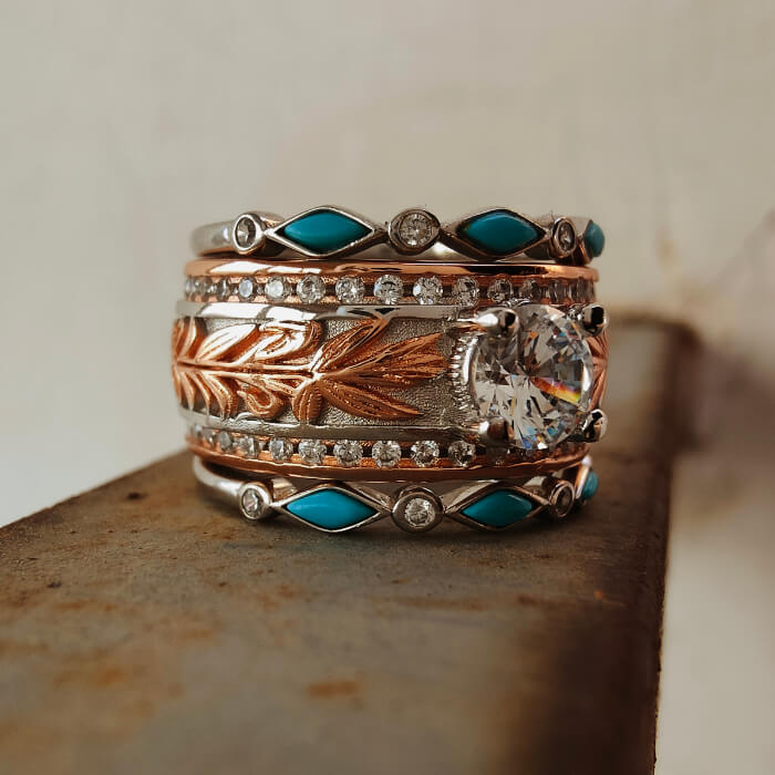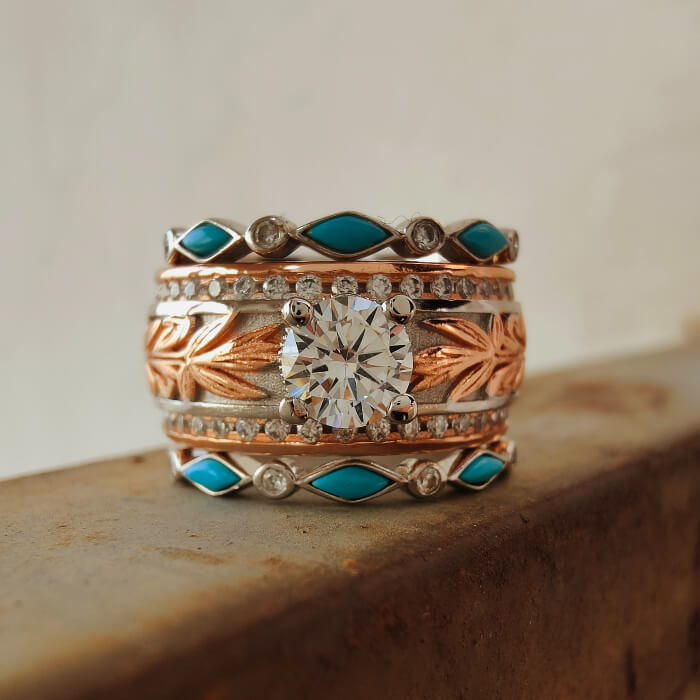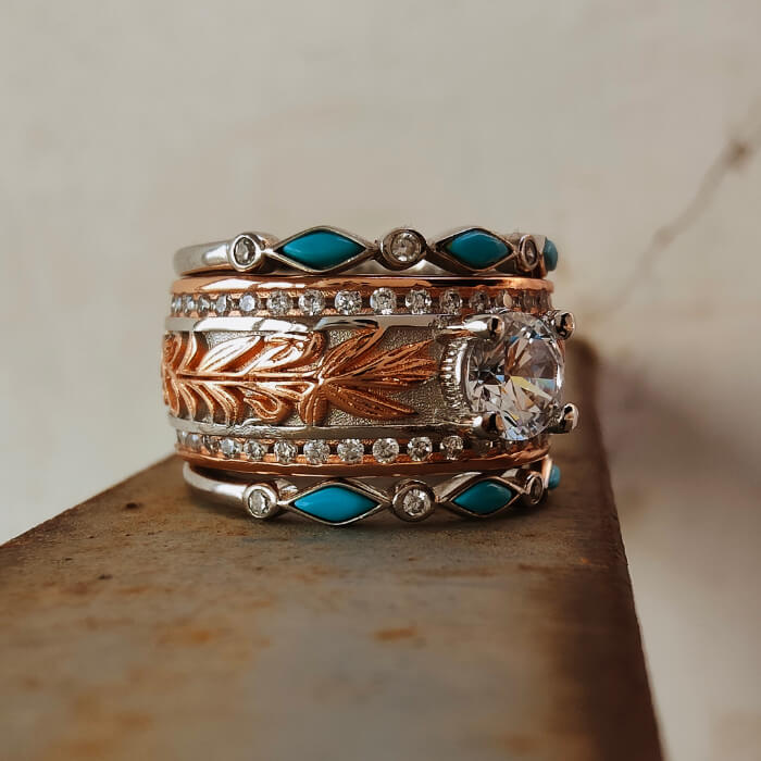 Perfect for those searching for western wedding rings, turquoise engagement rings, or rose gold bridal ring sets.
