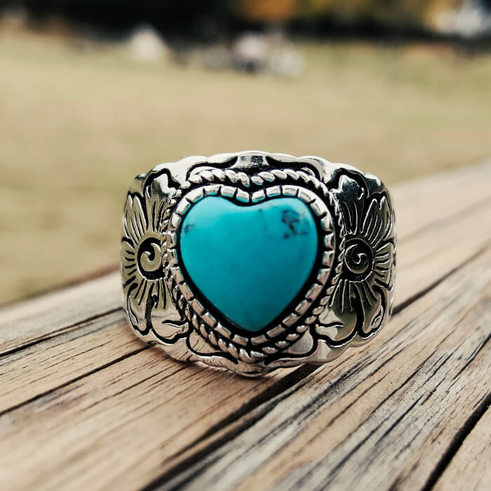 Women Western Flower Heart Turquoise Rings