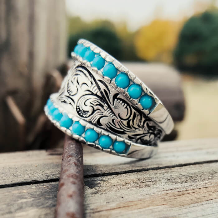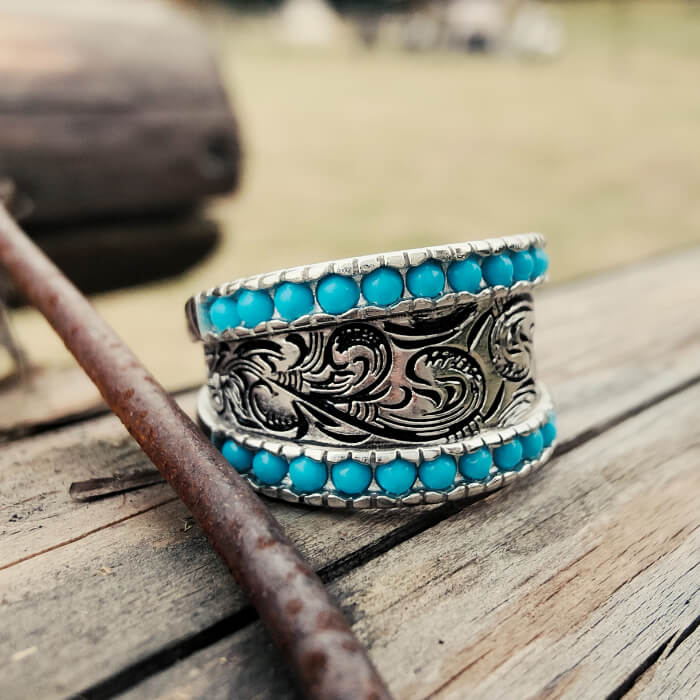 Women Western Flower Turquoise Band Rings for Women